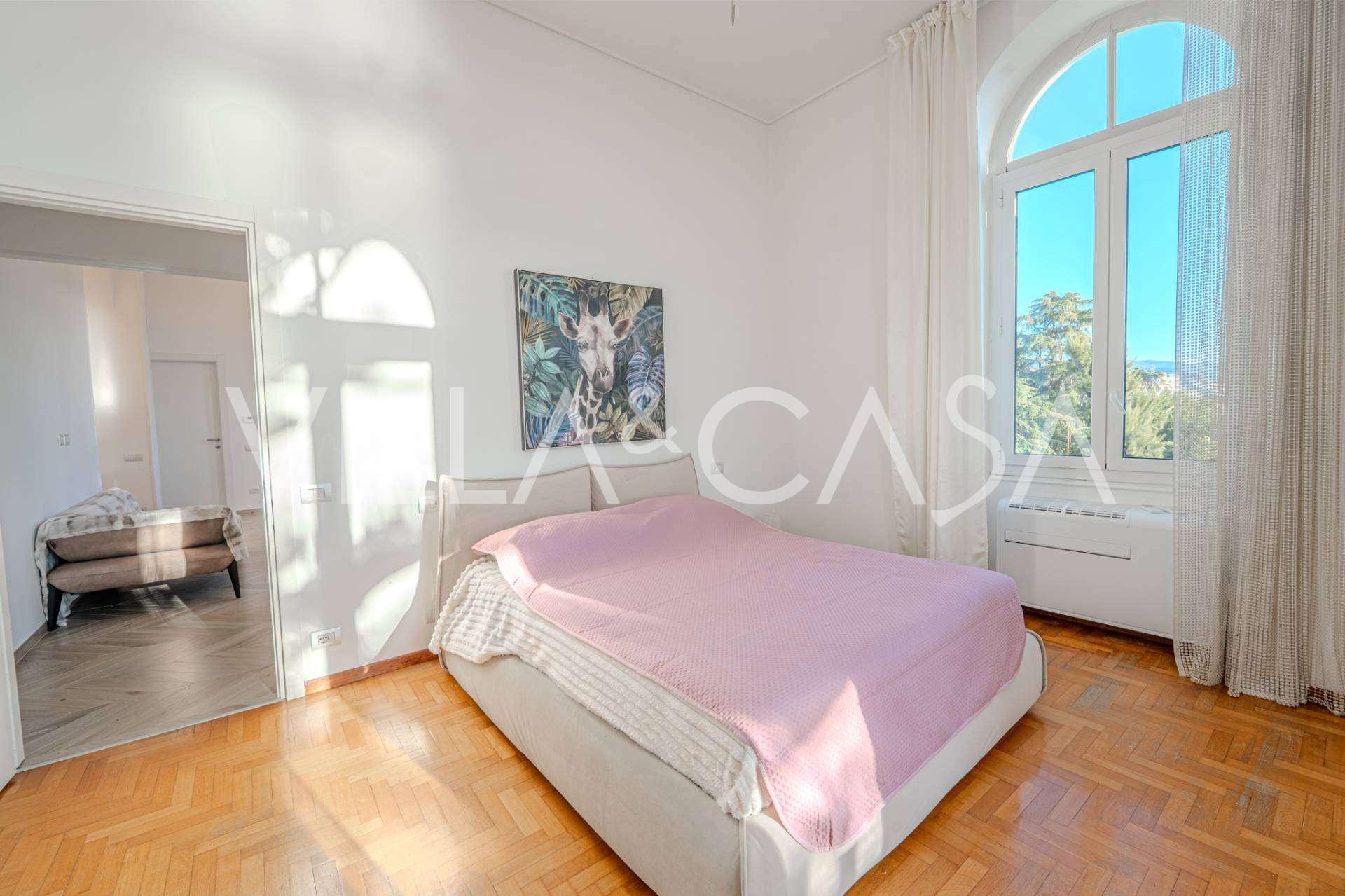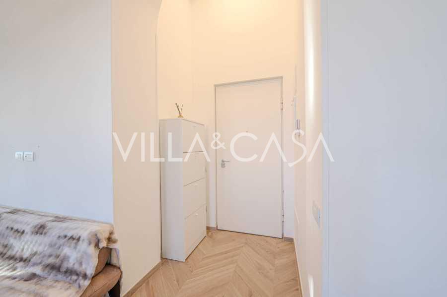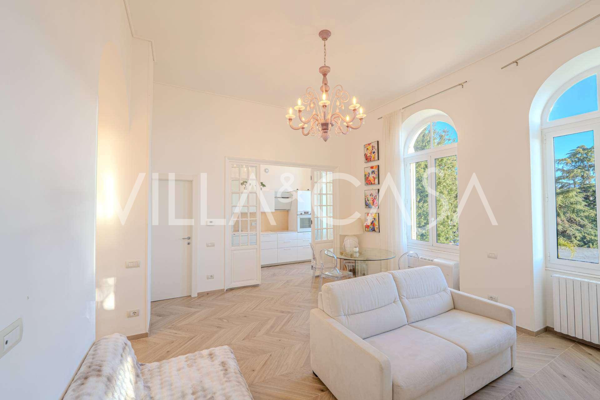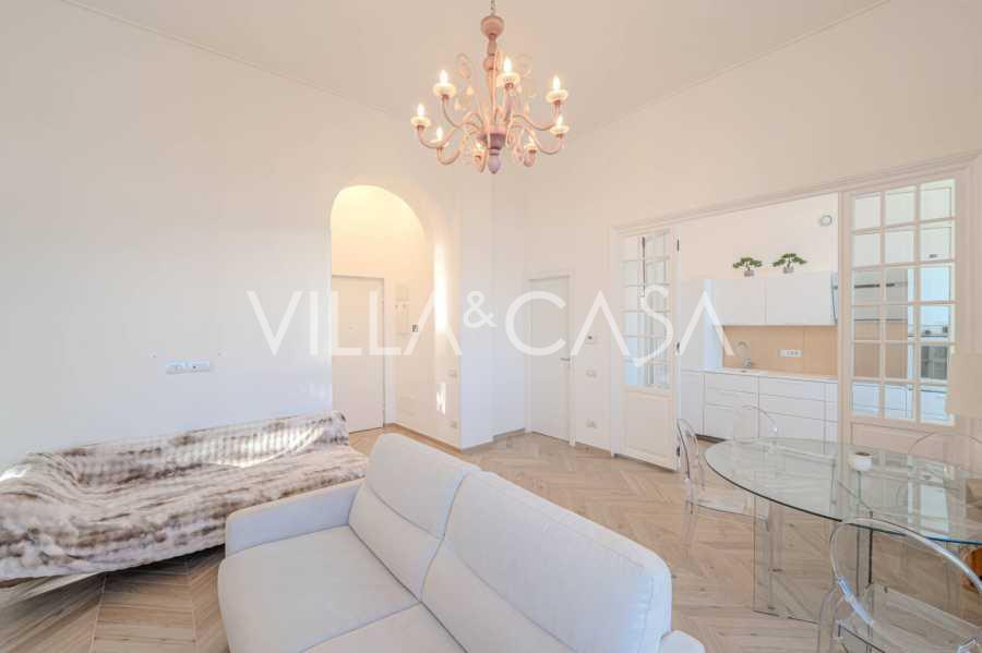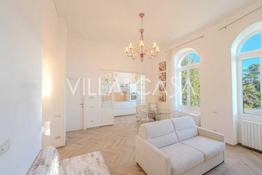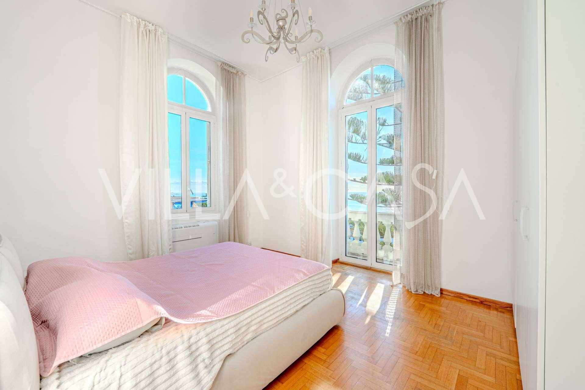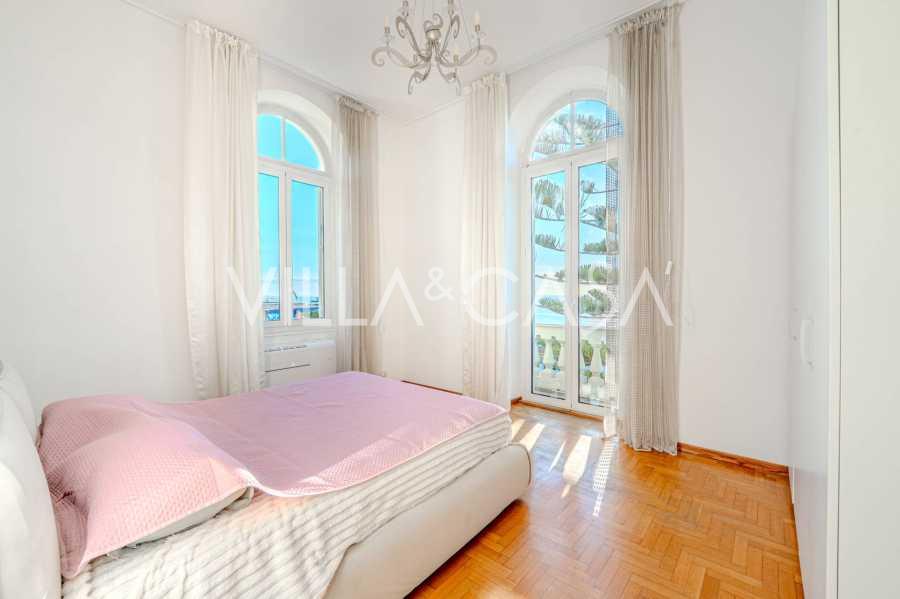 Nuomojamas dviejų kambarių butas Sanreme, kurio plotas 73 m2, su vaizdu į jūrą. Jis yra antrame pastato aukšte su liftu ir apima svetainę, miegamąjį su balkonu, virtuvę ir vonios kambarį. Butas puikios būklės, įrengtas naujais langais, oro kondicionieriumi, turi parketo grindis ir autonominį šildymą. Pilnai įrengtas baldais. Nuomos kaina apima vietą garaže. Objektas yra uždaroje gyvenamųjų namų komplekse su baseinu, sodu, poilsio zona ir kepsnine. Iki miesto centro ir jūros tik 7 minutės pėsčiomis.