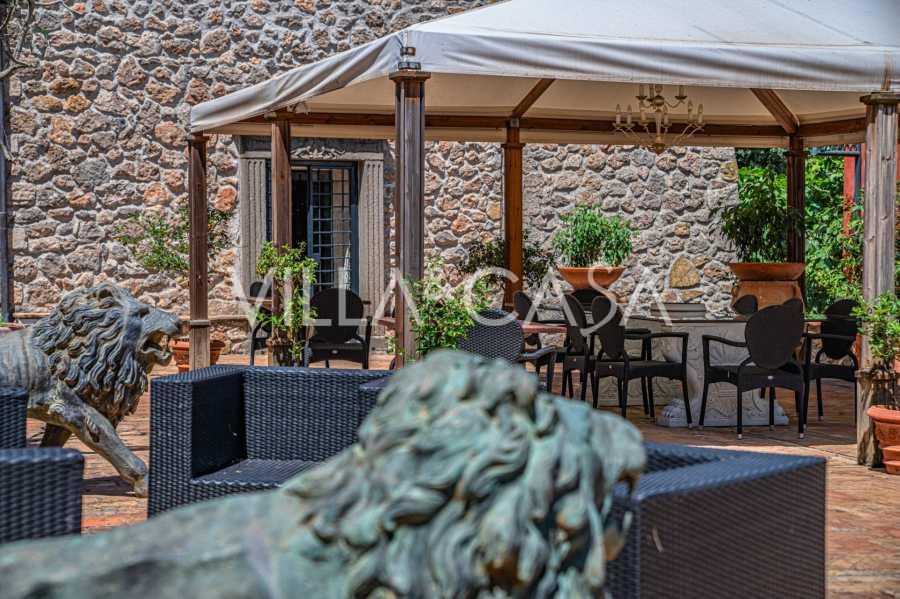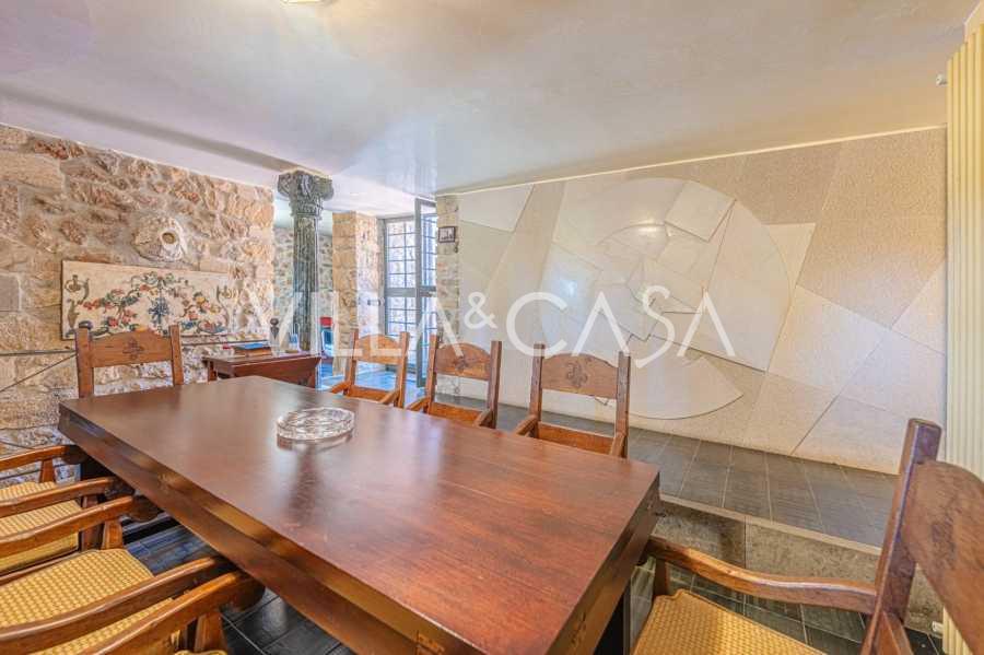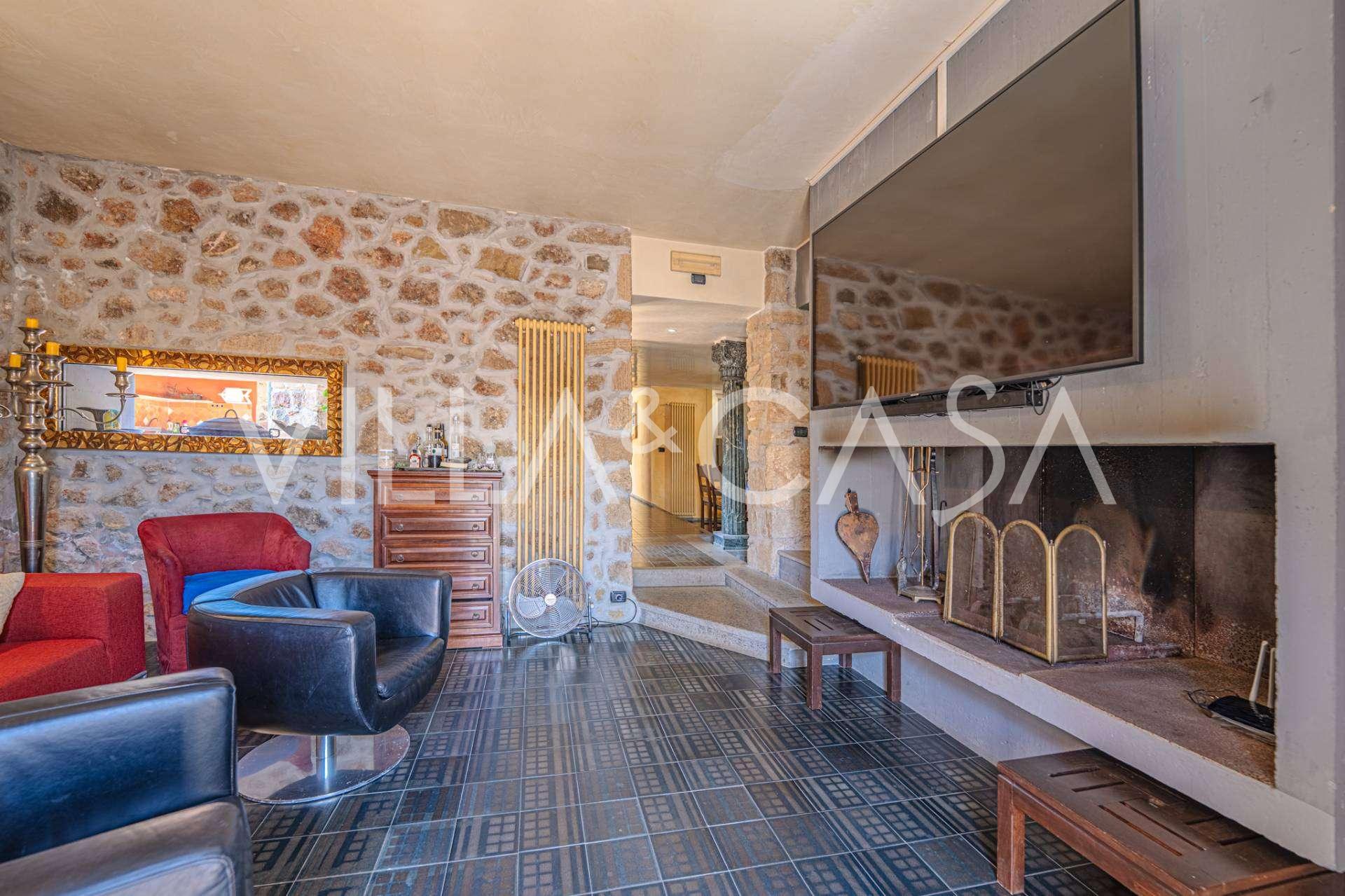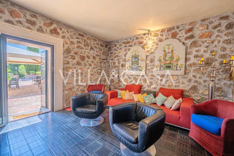 Pagrindinė vila, kurios plotas yra 716 kv. m, yra išdėstyta per tris lygius ir stebina apgalvota architektūra, kur šviesos ir šešėlių žaismas paverčia interjerus gyvomis scenomis. Erdvi svetainė su židiniu, virtuvė su dideliu sandėliu, septyni miegamieji, septyni vonios kambariai, treniruoklių salė su panoraminiu langu ir du vyno rūsiai su skliautiniais lubomis sukuria išskirtinio jaukumo ir prestižo atmosferą. Rezidencijos širdis yra skulptūrinis kūrinys „Trami del Sole“, sukurtas paties Pomodoro ir yra ryškus šiuolaikinio italų meno pavyzdys.