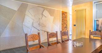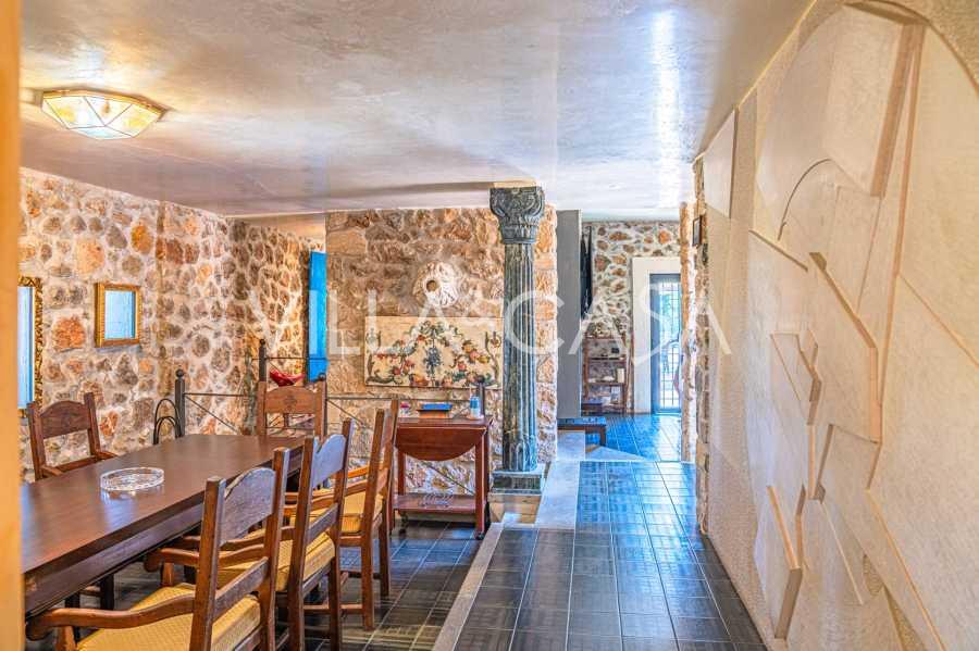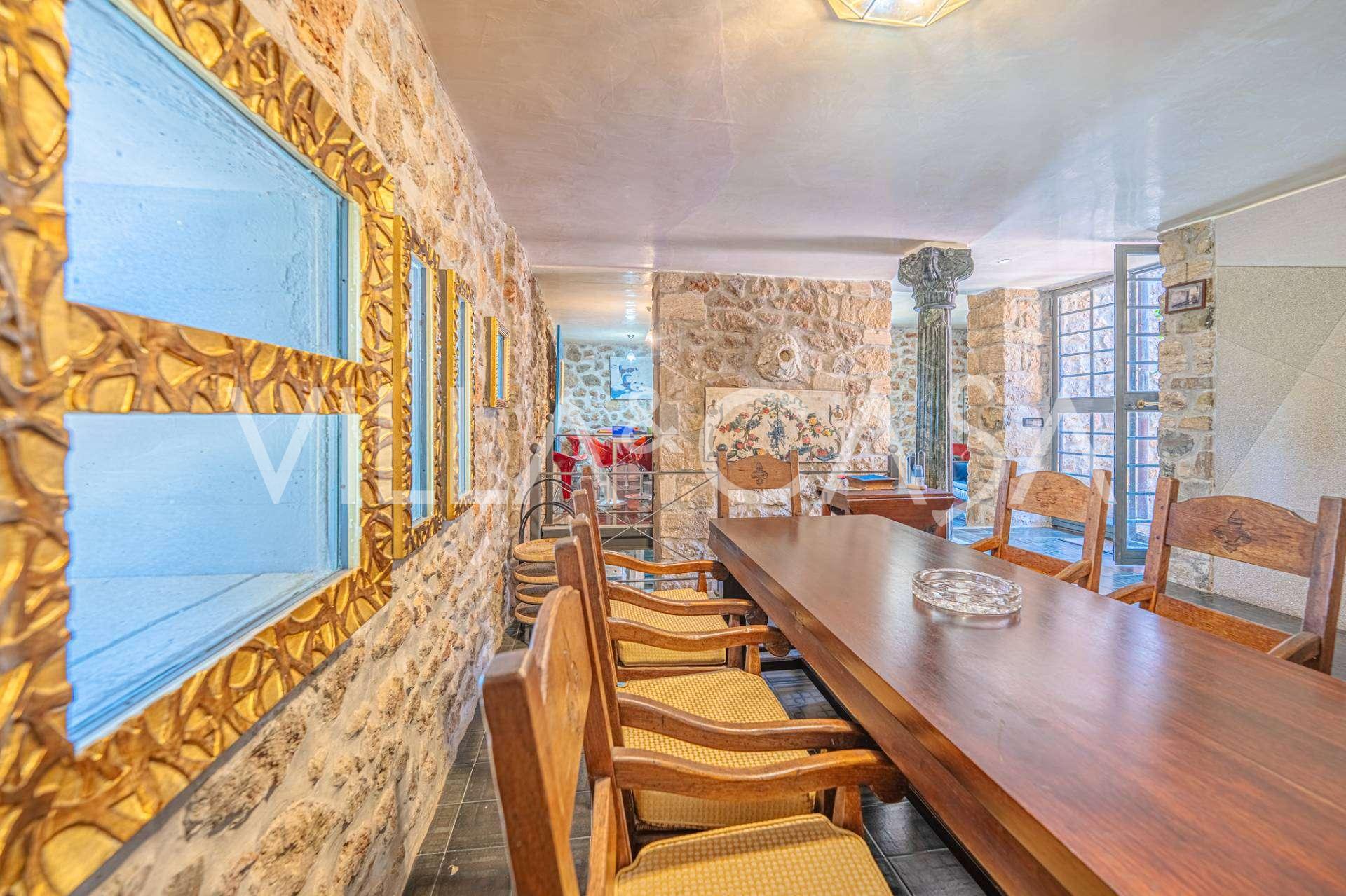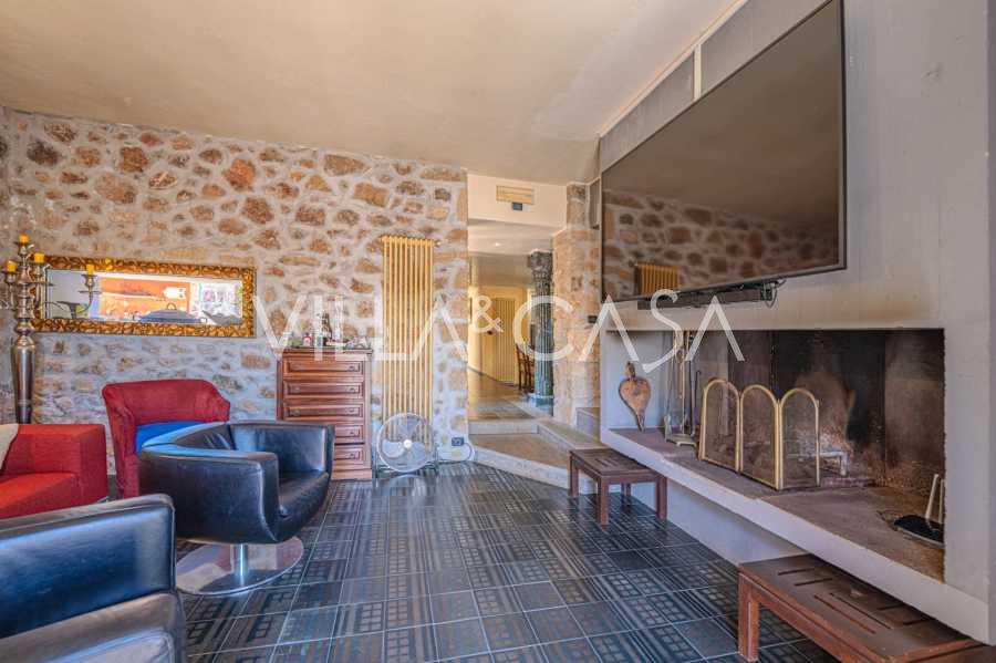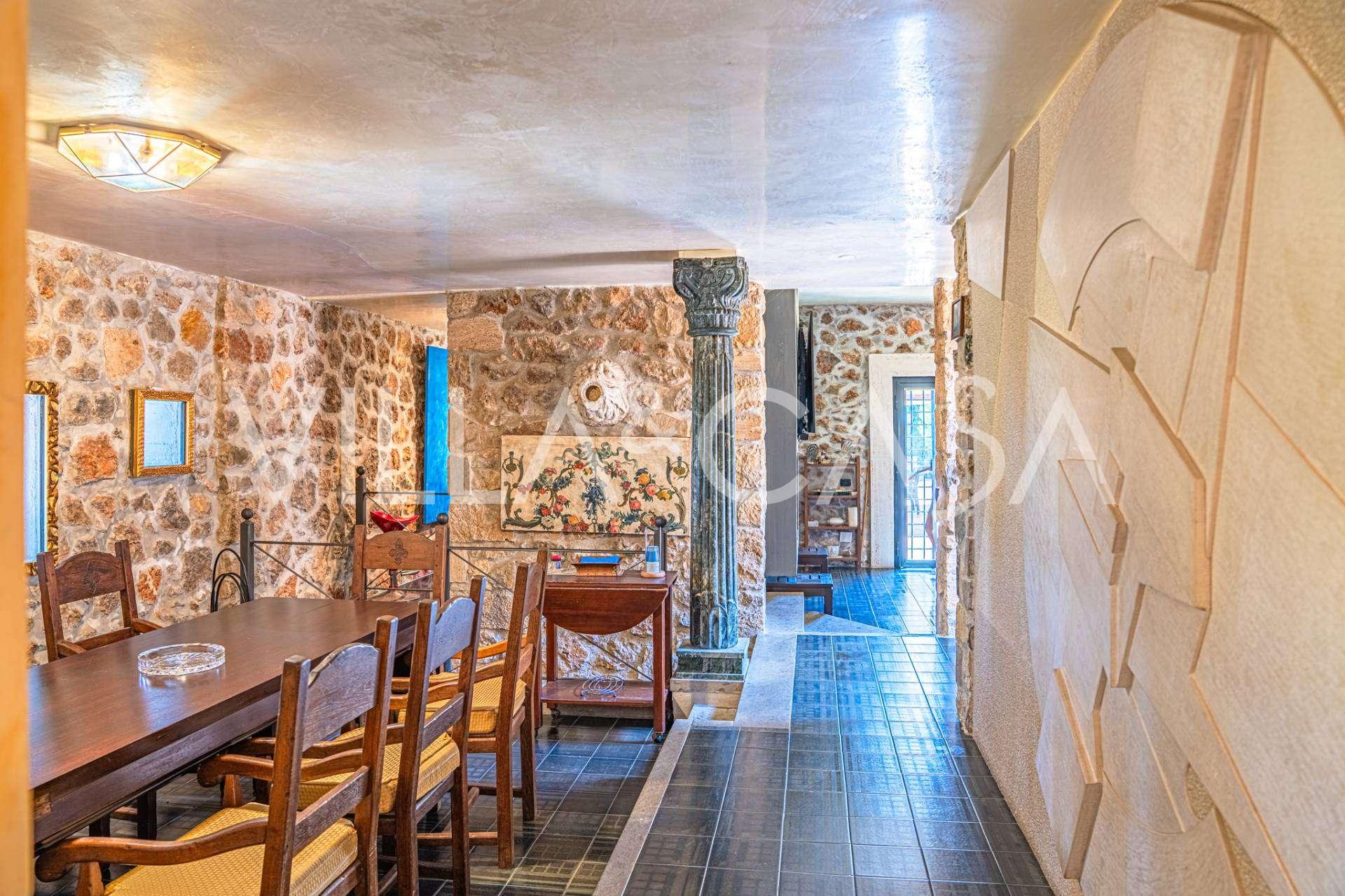 Pagrindinė vila, kurios plotas yra 716 kv. m, yra išdėstyta per tris lygius ir stebina apgalvota architektūra, kur šviesos ir šešėlių žaismas paverčia interjerus gyvomis scenomis. Erdvi svetainė su židiniu, virtuvė su dideliu sandėliu, septyni miegamieji, septyni vonios kambariai, treniruoklių salė su panoraminiu langu ir du vyno rūsiai su skliautiniais lubomis sukuria išskirtinio jaukumo ir prestižo atmosferą. Rezidencijos širdis yra skulptūrinis kūrinys „Trami del Sole“, sukurtas paties Pomodoro ir yra ryškus šiuolaikinio italų meno pavyzdys.