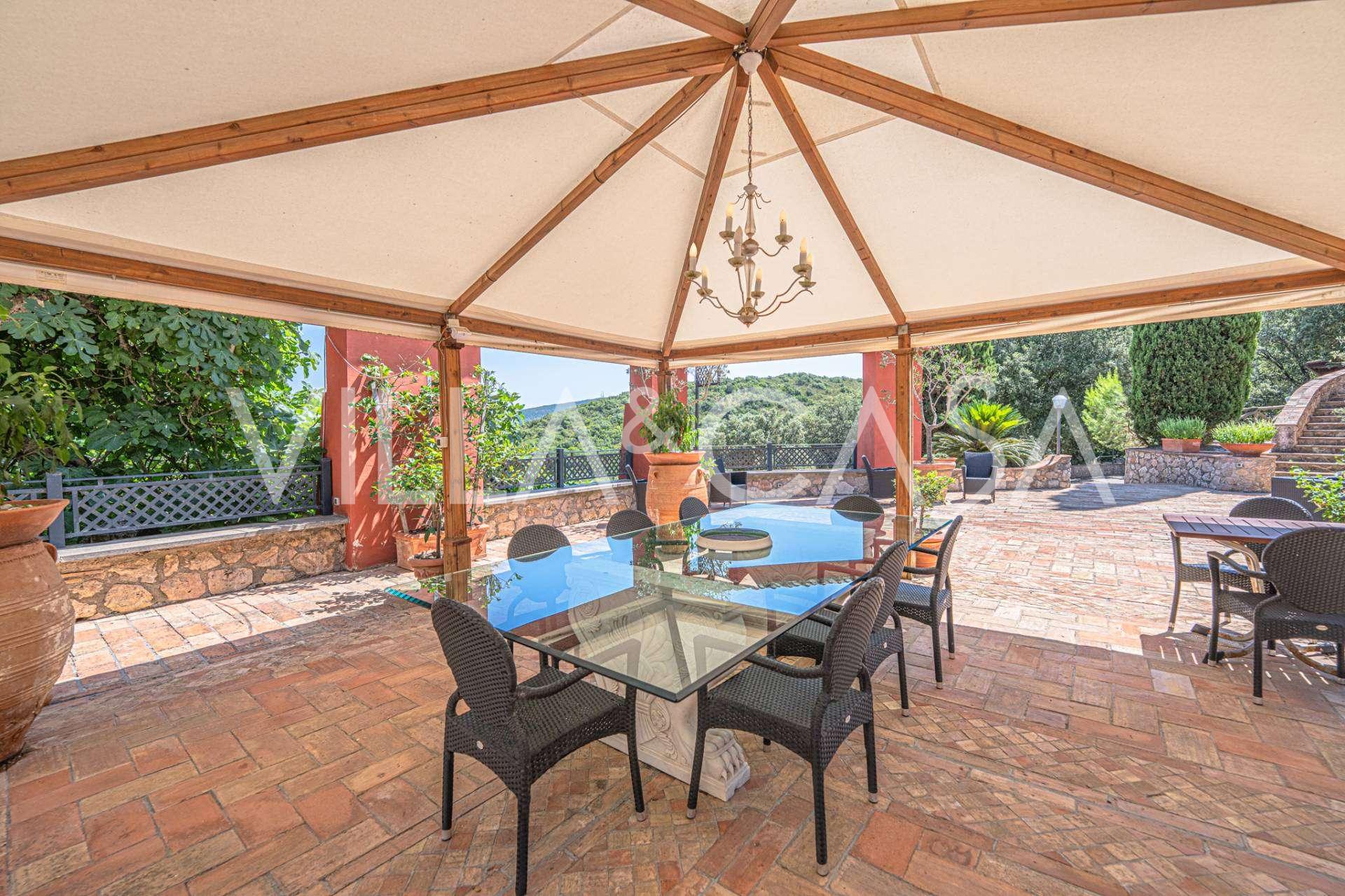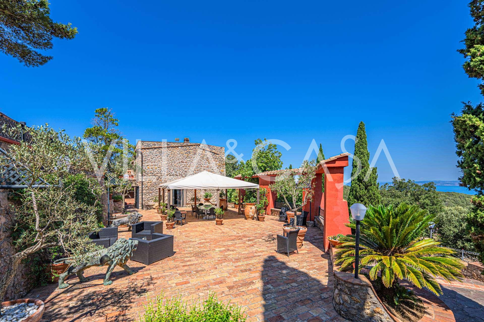 Vaizdingame Monte Argentario rajone, šalia jūros, parduodamas nepakartojamas architektūros šedevras – prabangi rezidencija su panoraminėmis terasomis, sraigtasparnių aikštele ir beveik 6 hektarų parku.