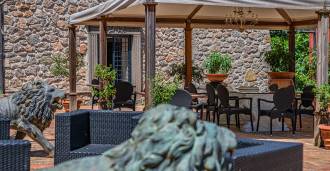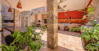 Panoraminės terasos ir vidinis kiemas su profesionalia virtuve