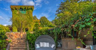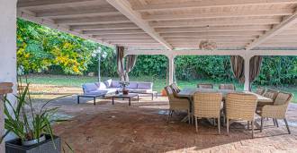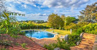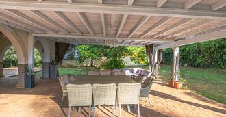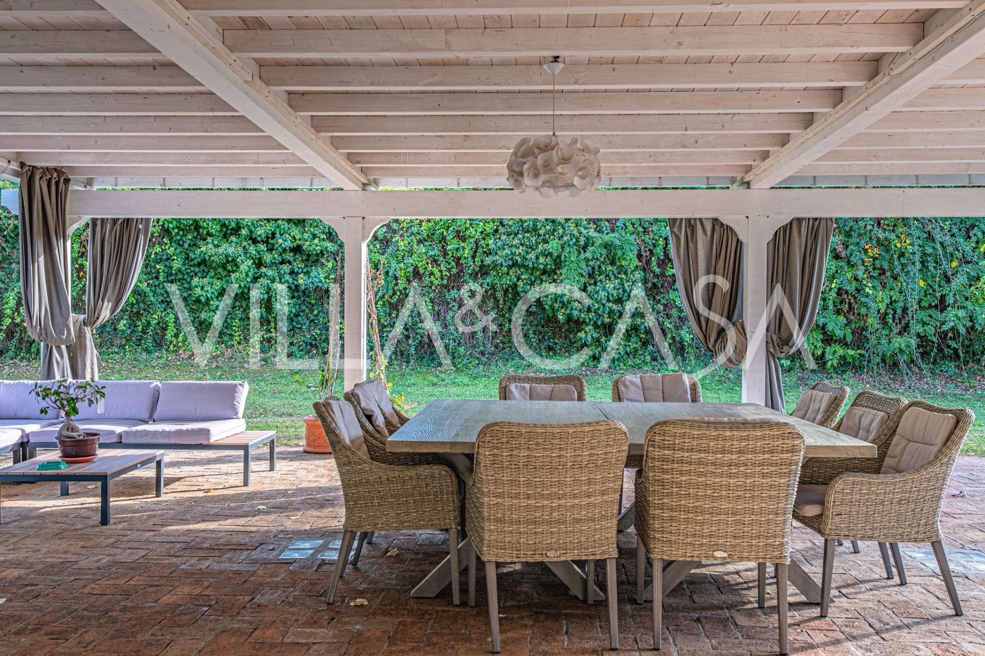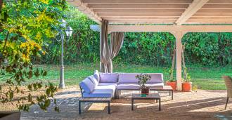 Vilos išorinė erdvė yra meno kūrinys po atviru dangumi. Dvi panoraminės terasos atveria nuostabius vaizdus į Agro-Romano kraštovaizdžius. Sodo centre yra dizaino baseinas su mėlyna mozaika, apsuptas kvapnių gėlių ir žalumos, tai vieta, kur prabanga susitinka su gamta. Į jį veda romantiški akmeniniai laiptai, nusileidžiantys nuo senovinio bokšto, apraizgyto žaliu gebenėmis. Elegantiška pavėsinė su vieta vakarienei lauke, baseino baras ir kepsninės zona paverčia vilą idealia vieta priėmimams, šventėms ir privačiam poilsiui.