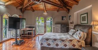 Viršutiniuose aukštuose yra miego zona, įskaitant keturis šviesius miegamuosius ir du išskirtinius vonios kambarius. Panoraminiai langai atveria kvapą gniaužiančius vaizdus į Romos kalvas ir vaizdingas Agro-Romano apylinkes, lyg tapytus pačios gamtos.